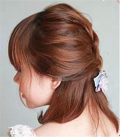 5. 固定:将辫子编织到发尾,用发圈固定。用发夹将辫子固定在头顶,确保辫子不会松散。